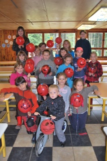 Odedneška máme navíc nové červené kamarády , které jsme celé dopoledne nosily s sebou. Těšíme se na diskotéku a až přijedeme zas.